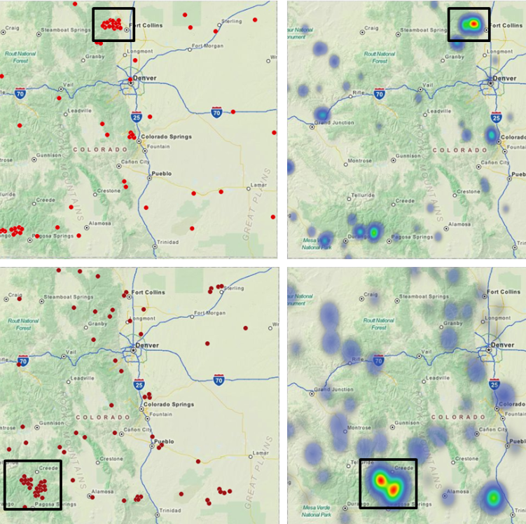 Heat map analysis can be done in Map Editor on any point data you have or that you collect in the field by using Mobile Data Collection. You can have multiple coworkers working on maps and data at the same time while having different permissions like view/edit/export or even collect/update for data collection. With Map Viewer you can share your maps with users that are even outside your organization, through an intuitive user interface.