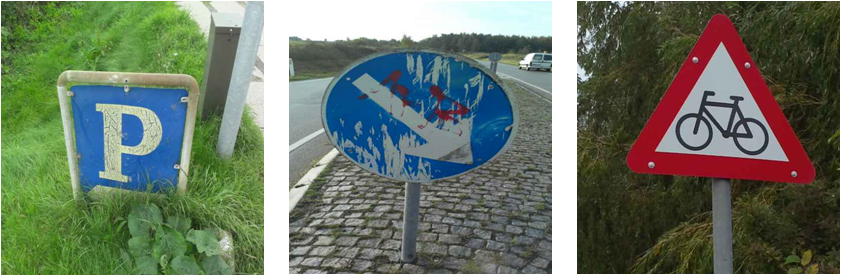 Different levels of maintenance that needs to be done upon collected data from the field from left to right: overgrown (overvokset), damaged (skadet), good (god)