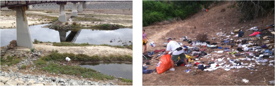 Volunteer cleanup area of Lower Santa Ana River with collected Mobile Data Collection locations